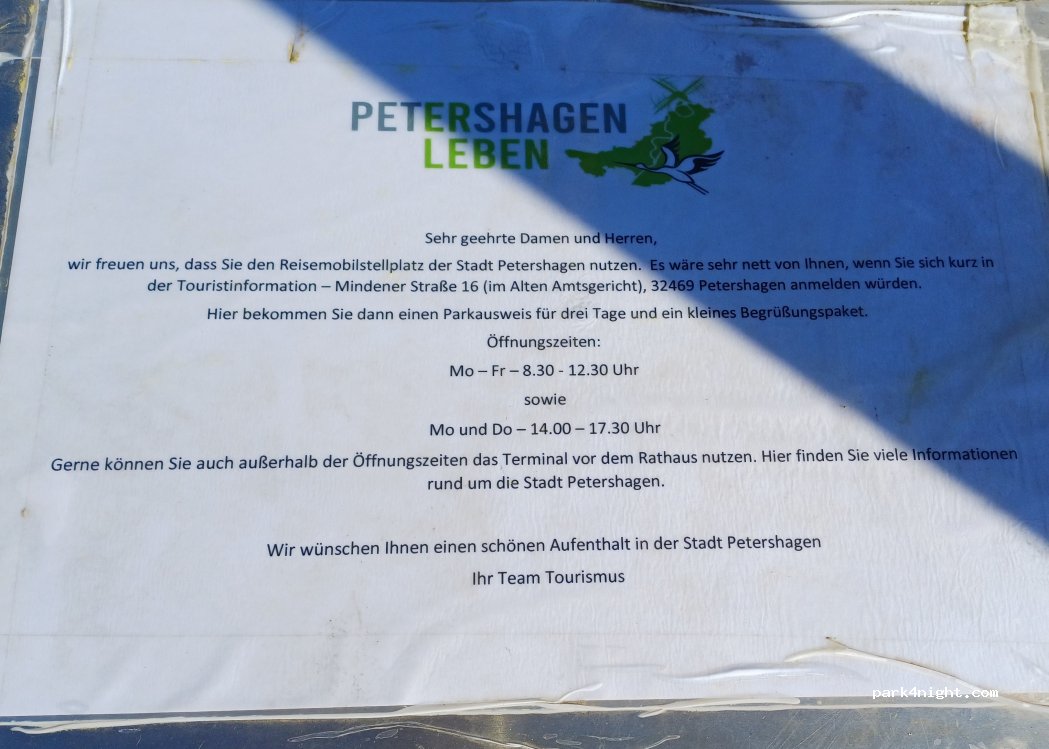 Der Platz ist wie beschrieben. Nachts ist es ruhig. Tolles Radwegenetz und eine sehenswerte Altstadt. Am Freitag ist Wochenmarkt, der Besuch dort lohnt sich. Ein Dank an die Stadt Petershagen für den kostenlosen Stellplatz!