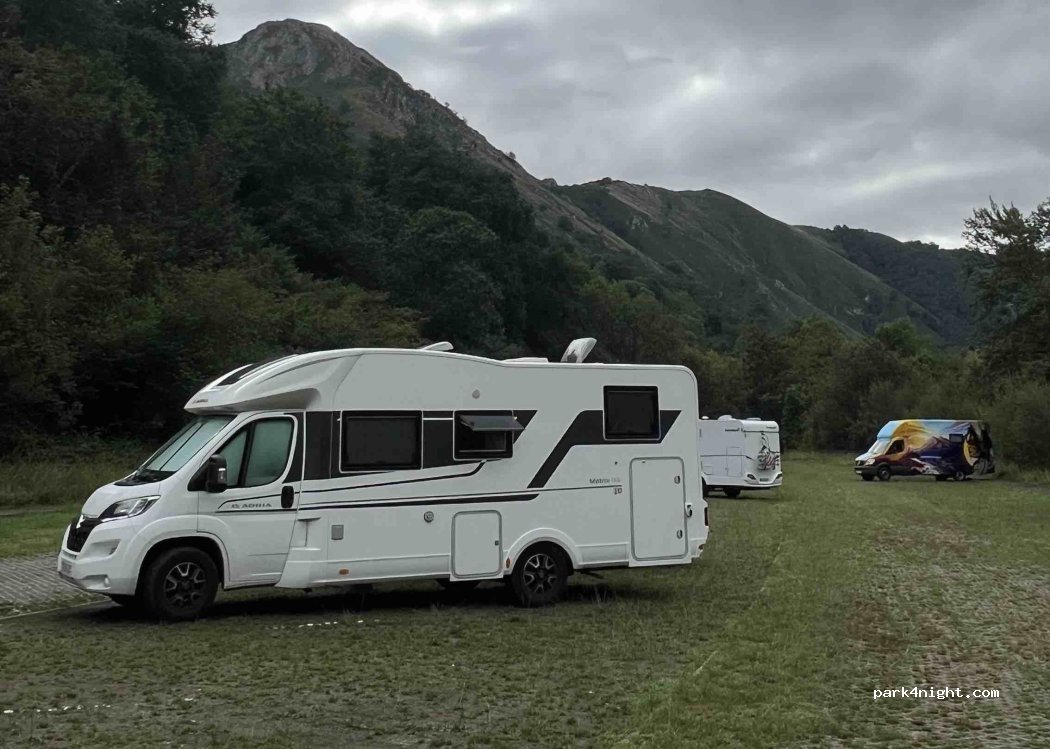 Lugar idilico para pasar la noche. tranquilo y muy amplio, con buen ambiente de autocaravanas. entre montañas y con el sonido del agua que pasa al lado.