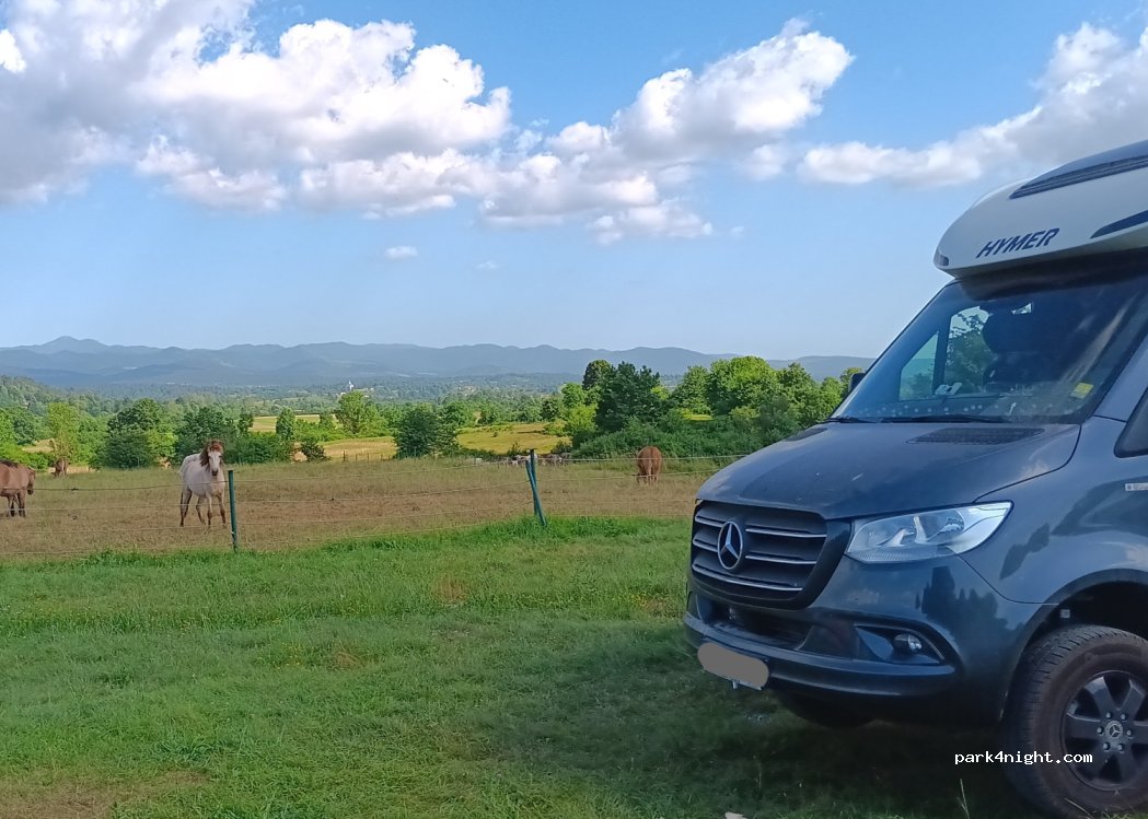 Super camping! Nous sommes arrivés tardivement et la propriétaire nous a gentiment laissé rentrer. Il n’y a pas de place délimitée ce qui est appréciable car on ne se sent pas «parkés », la vue sur les champs et les collines est magnifique. Concernant les équipements tout est neuf, le restaurant/bar est top, le petit déjeuner copieux et délicieux ! Les sanitaires sont impeccables. On recommande !