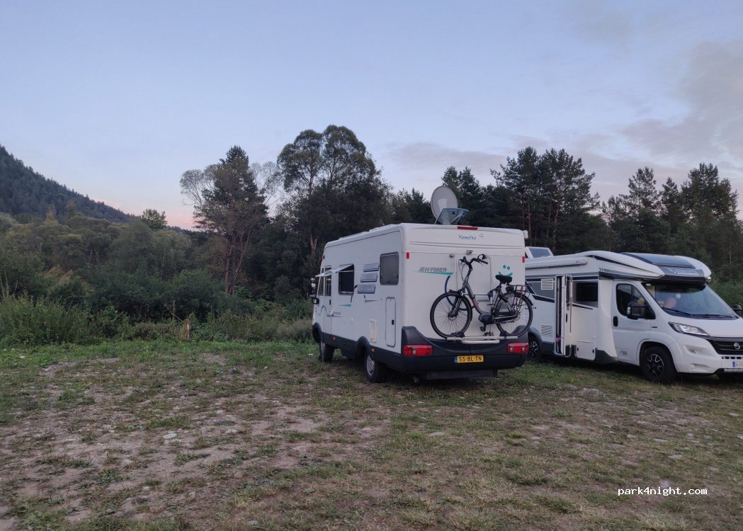 Parcheggio per la discesa del fiume in zattera. Arrivati nel pomeriggio e pernottato. Prezzo: 30 zlory/24 ore, nessun servizio