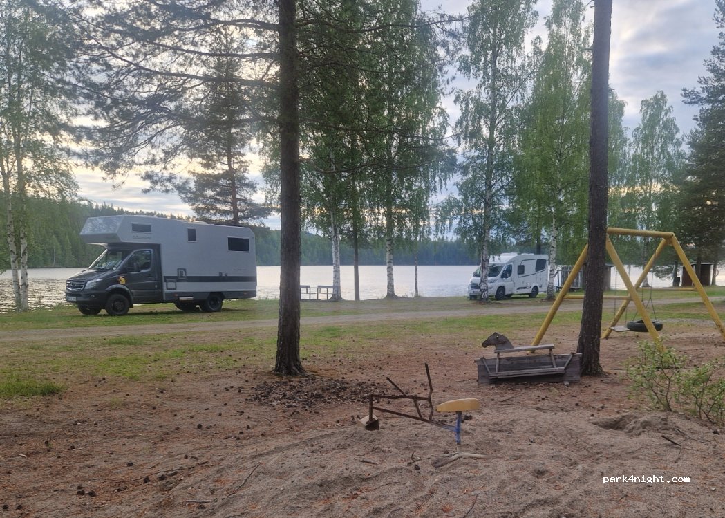 Wunderschön angelegter Rastplatz an breitem Fluss, mit toller Sicht aufs Wasser. Gut befestigt und eben. Alles da... Von Handwasserpumpe, Spülbecken, Kessel um Wasser heiß zu machen.. Windgeschützte Feuer/Grillstellen und Feuerholz. Sitzecken... Baden möglich... Einfach super... mit Plumbsklo und Spielplatz