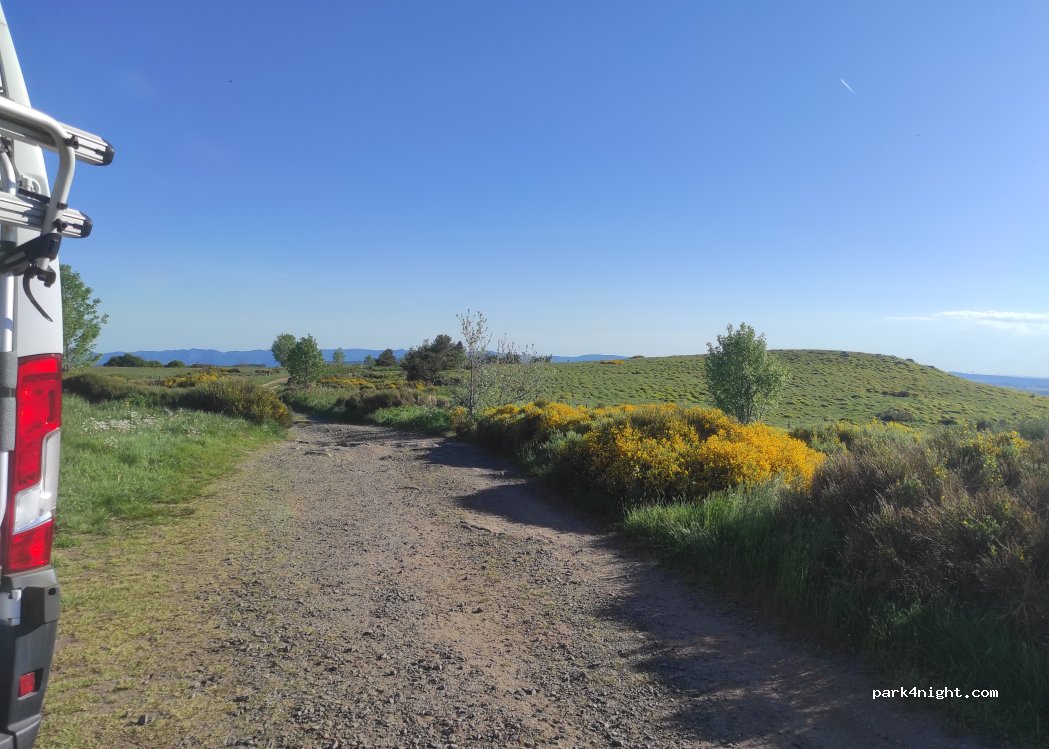 In the bend, take the road to the south for about 100m. Parking on gravel in very slight slope. No services. Breathtaking view, calm assured. Many marked trails, from the promenade to the GR. Mount Gerbier de Jonc 5 minutes by car. Restaurants at Gerbier or Lachamp-Raphael 10 minutes. On the site, interesting "water tower" with explanations by panels.