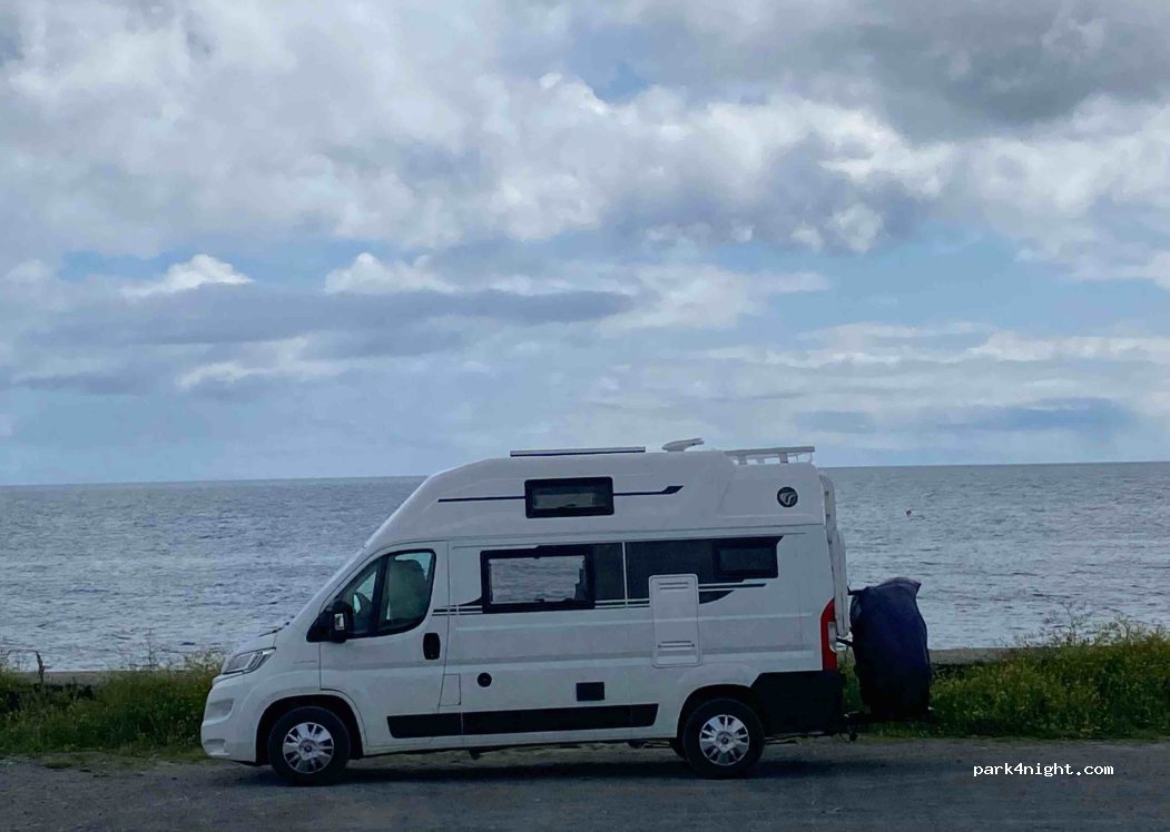 Just spent Saturday night here. 3 vans in total. Quiet night followed by a quiet morning. Ground is quite uneven in places but managed to find a flat space right next to the wall. Also kept the boy racers away. Was nice having breakfast watching the sea roar. Quite exposed so avoid during strong easterly winds.