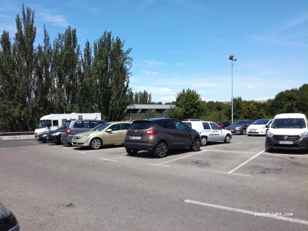 Grand parking (sans ombre et un peu en pente) près du parc de l'Ebro. Plusieurs centaines d'emplacements pour voiture, mais avec un peu de chance, il est possible de garer nos véhicules sur deux places en long. Idéal pour visiter la ville. Musée de la Rioja à 200m, Cathédrale à 300m.