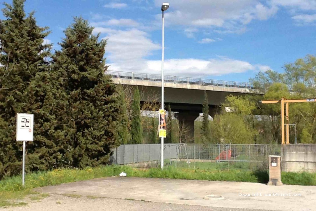 Bonne aire de stationnement, conseillée par le Carabinieri. Nuit calme car la circulation sur le pont cesse. Le petit village est très sympathique et le mardi matin, il y a un très beau marché.