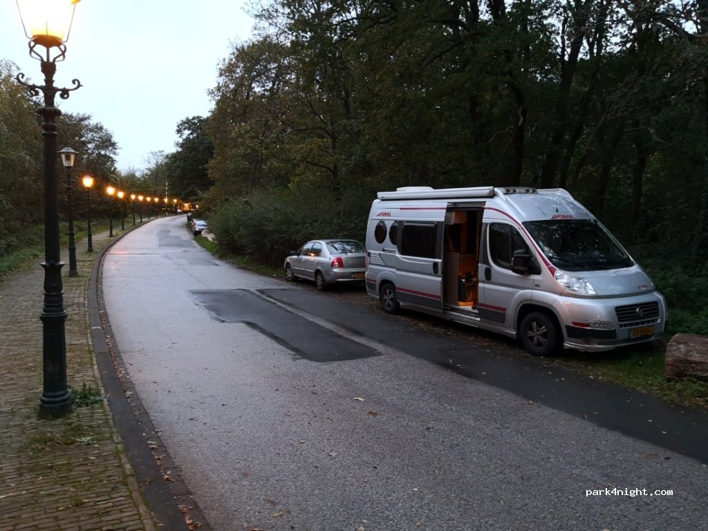 Endroit sans beaucoup de charme, ni espace autour des places. En revanche très pratique pour visiter la ville (on est dedans) de préférence à vélo. Très calme, à côté d'un bois et d'un quartier d'ambassades. Abrité du vent. Il y a 3 petits renfoncements pour se garer, pouvant accueillir jusqu'à 2 véhicules si on ne se gare pas au milieu. Pas toujours très plat.