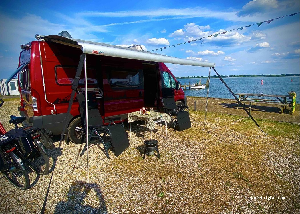 Ein schöner Stellplatz direkt am Wasser. Man sollte nur zeitlich da sein, sonst ist man in der "zweiten Reihe". Ist aber nicht wirklich schlechter. Für Strom werden auch schonmal Verteiler dazu geholt. Schön zum Radfahren.