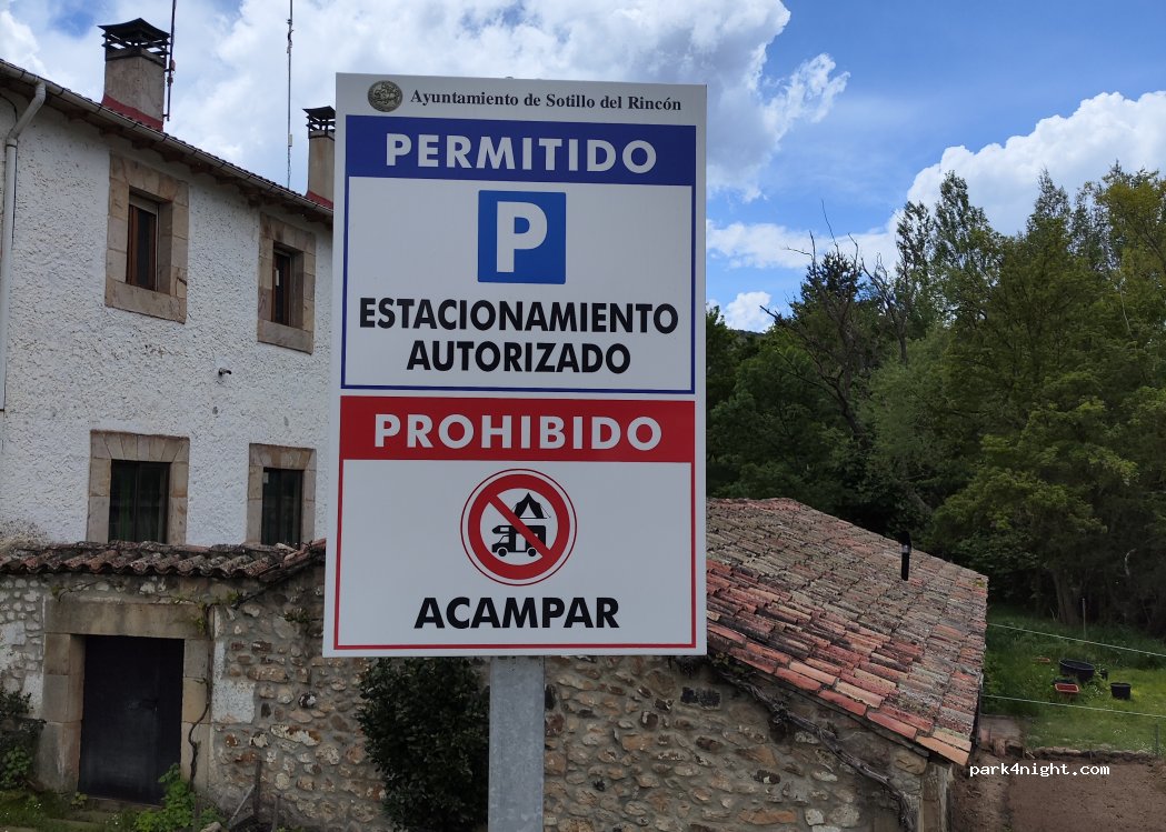 Parking dans la zone de loisirs Carrangleras à Sotillo del Rincón, l'attraction principale est les piscines naturelles de la rivière Razón, il dispose d'un puits, aires de pique-nique, aire de jeux et bar.