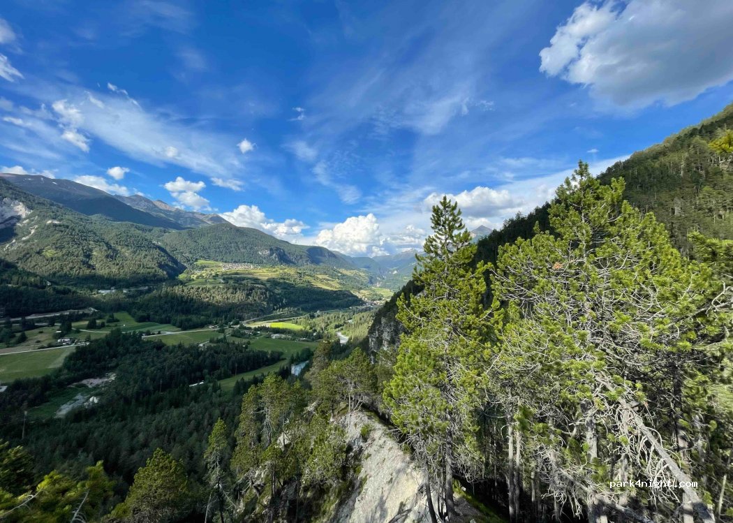 Nach einem guten Essen im Restaurant etwas oberhalb parkten wir hier. Die Glocken der nahegelegenen Kirche hörten wir nicht und das Rauschen des nahegelegenen Gebirgsbaches sorgte für eine optimale Geräuschkulisse. Absolut empfehlenswert