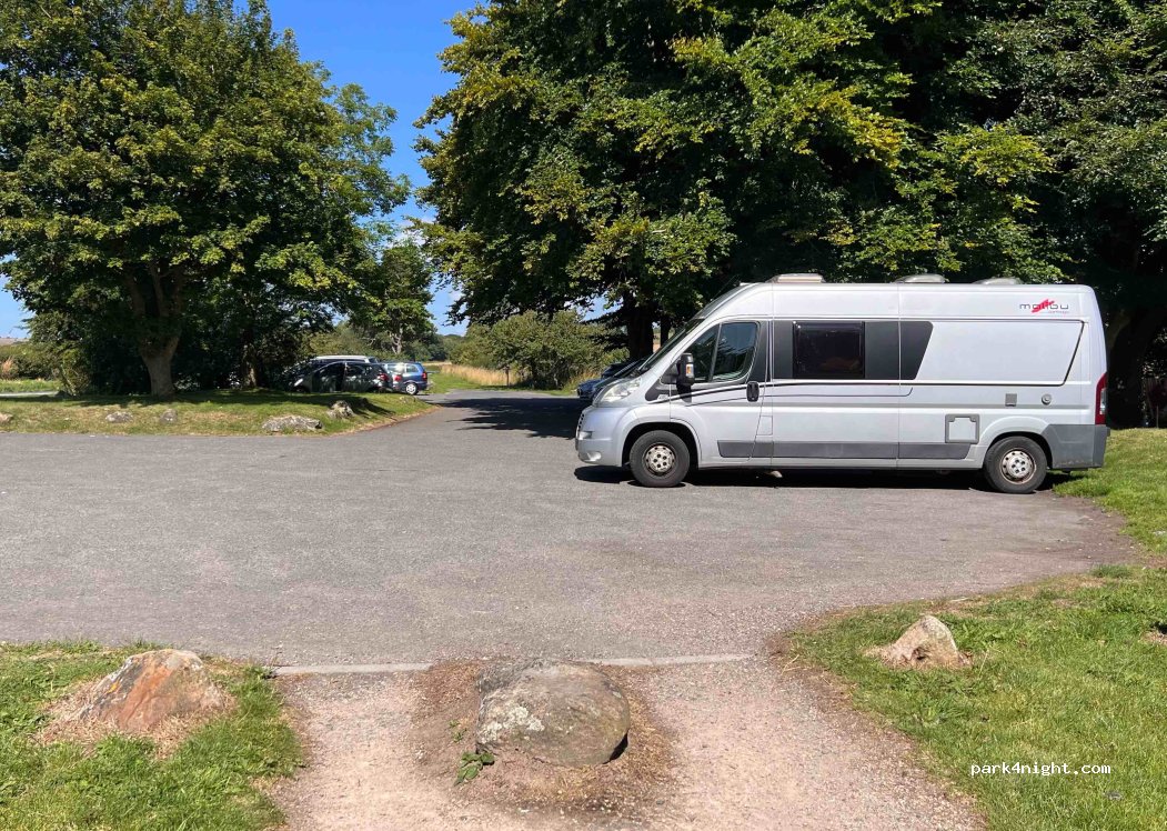 very small carpark and lots of low hanging branches ...so no good for anything bigger than a vw t5 size camper. given the very busy very noisy road right next to it nothing much lost. Good for a 5 minute stop to look at the hill , nothing more