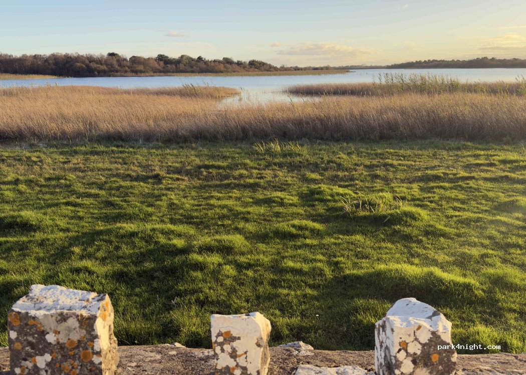 Lovely, peaceful and apart from the odd passing car, very quiet. Nice view of the lake and at the other side of the road, a cemetery, a ruined chapel and a field with a few horses. Enough space for 2 vans. No height restrictions and no amenities. Perfect for our Volkswagon campervan