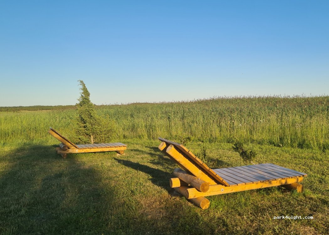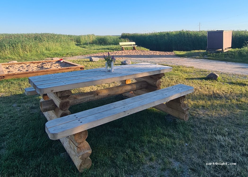 Nice place next to the beginning of the bridge. Table and bench. Possibly also overnight. Small dirt road leads to another parking space in the reeds.