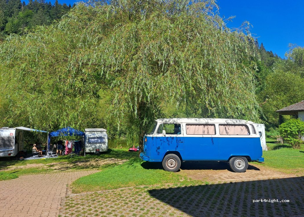 Ein ganz toller Platz, sehr ruhig und vor allem kühl in Tagen großer Hitze. Direkt am Fluss mit Bademöglichkeit. Wir hatten nicht reserviert, aber Glück, weil jemand abgesagt hatte. Insgesamt sind wir dann fünf Nächte geblieben, weil es so schön war - Sanitärräume und Küche waren immer sauber. Aus unserer Sicht sehr ruhig und sehr nette Betreiber. Die Jura-Card (freies Bahnfahren) war klasse!