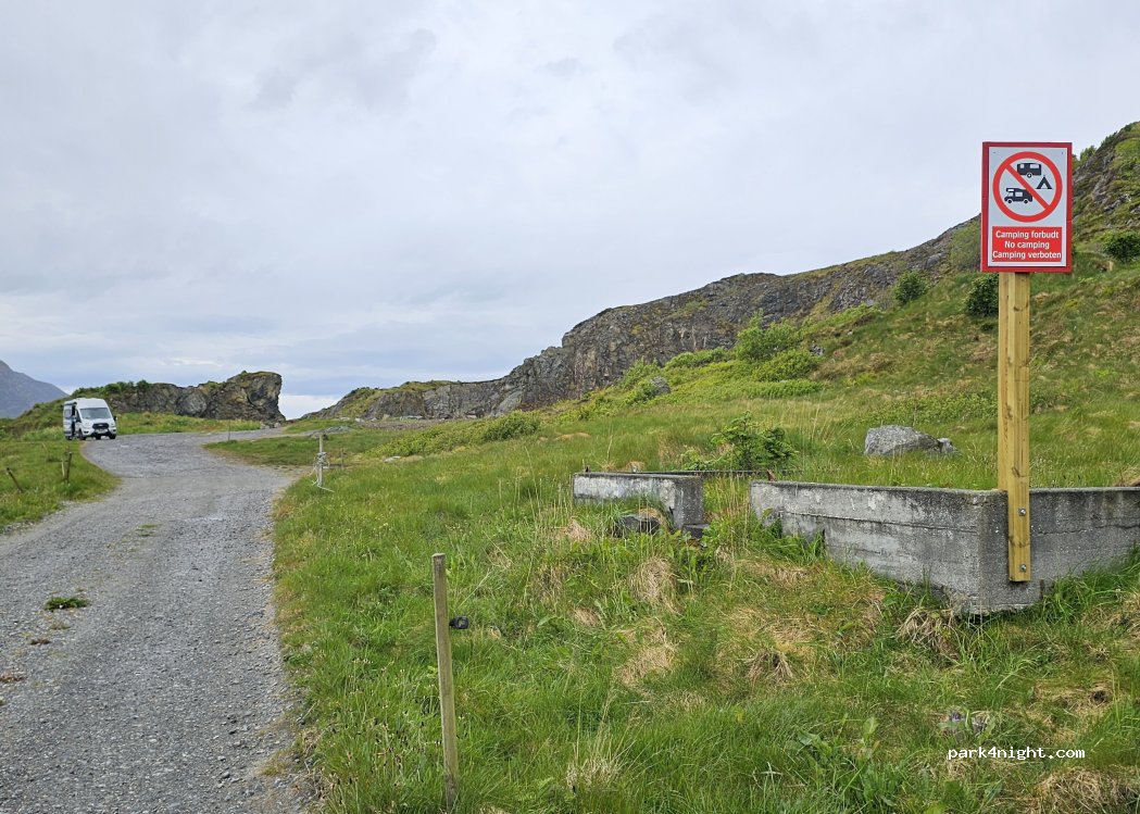 Formidable pour les amoureux de la solitude, un des plus beaux spots de Norvège mais de la place pour seulement 7 véhicules contrairement à ce qui est dit dans les autres commentaires. Après 20h c’est plein.