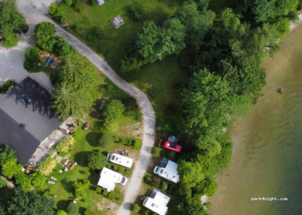 Charmant petit camping au bord du lac dans un parc boisé très calme.Idéal pour des ballades en vélo jusqu’à Hallstatt. Le propriétaire est sympathique et parle français