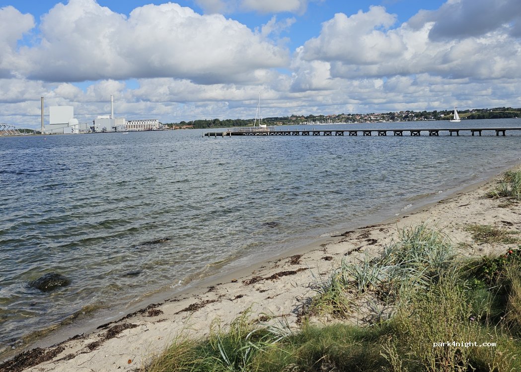 Nice place for the day. Quite a nice beach for the east coast but the view at the refinery is less than optimal. Definitely only for the day! A sign prohibits Autocampers from 22-8! A car with a roof tent beneath us had to leave too.