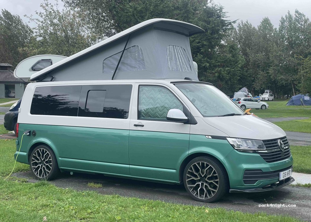 €34 for van without EHU. A little expensive but it's a nice place, on the grounds of historic Westport House. Included in the cost is a 25% discount for the tour of the house, which is very interesting. The grounds are beautiful too.