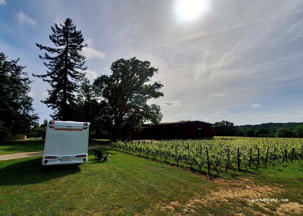 Nous y avons passé la nuit lors d’un mariage et avons découvert que ce site était référencé accueillant les camping-cars. Très beau domaine dans le vignoble, au calme. Aire de jeux pour enfants, toilettes. Possibilité de dégustation de vins et visite du musée du vin, petit train qui fait le tour du domaine.