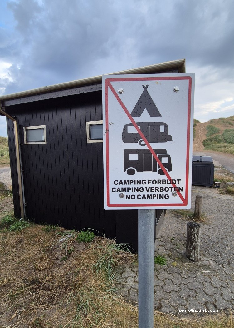 Toller, kostenloser Parkplatz hinter den Dünen mit ruhigem Strandabschnitt (blaue Flagge). Toilette vorhanden, werden täglich gereinigt . Mit dem Fahrrad ist man in 10-15 Minuten in der Innenstadt und in 25 Minuten in Grenen. Es lohnt sich ab nachmittags abzureisen, da viele andere Camper später am Abend kommen. Bei starkem Regen ist die Seite auf der das Toilettenhäuschen und die Müllcontainer stehen zu empfehlen, da die andere Seite sehr überschwemmt war.