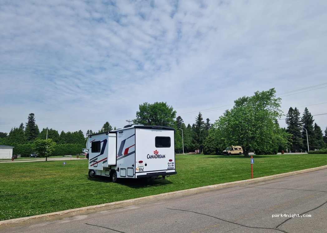 Très belle endroit aménagé par la ville. Beau parc. Magnifique plage de sable. J'ai vérifié les règlements municipaux et possibilité de s'installer pour 3 nuits consécutives. Pas mal de va et vient, mais nous verrons comment se passera notre 1ere nuit. Nous avons un VR 32 pieds.