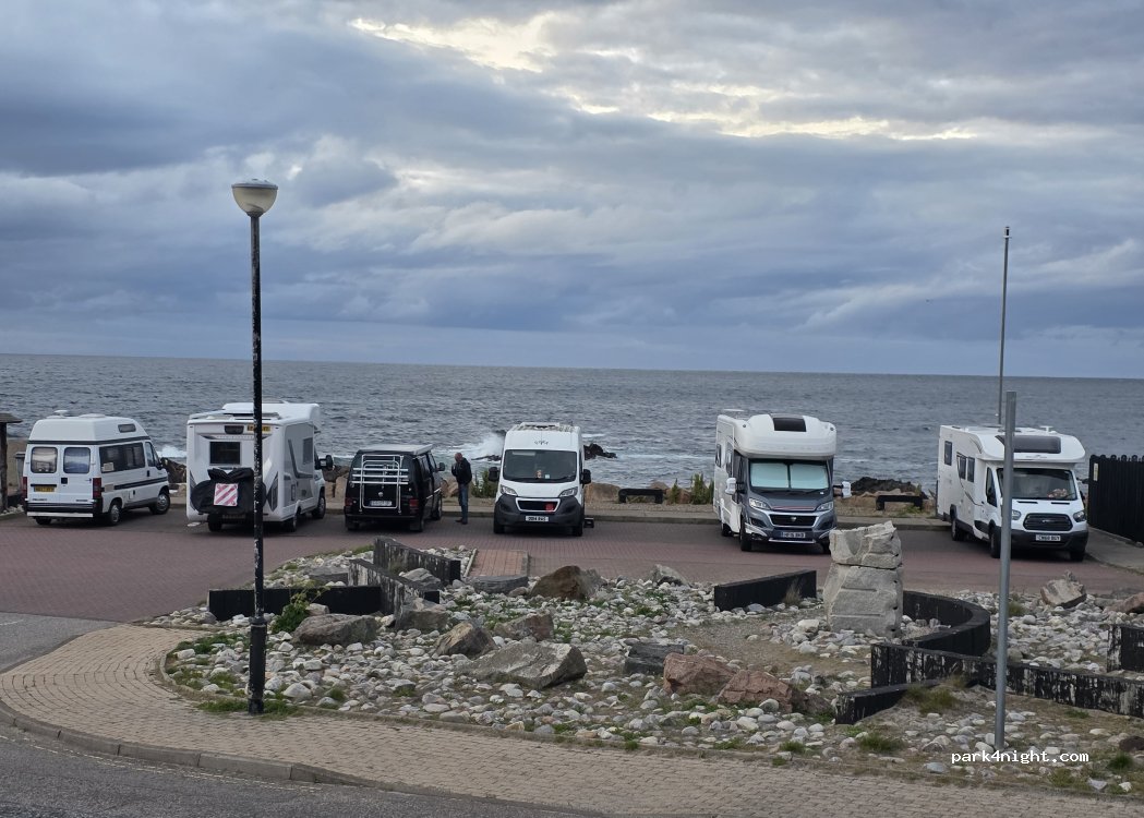 Passing through so overnighted here for one night along with two other campers felt safe. Very quiet only sound wind and sea. Fabulous location, nice sea view dog walk along the coast and harbour etc. Toilets with hot water 2 mins walk away at the marina, one of the cleanest I've seen. Feels like a really welcoming place. Thank you Banff