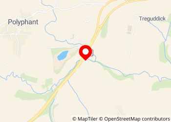 Off the a30. Great little place to stop over. Toilets and a tea bar, plenty of parking and long spaces for motorhomes and caravans. Nice walks by the river and plenty of picnic tables for use. 24 hour max stay, no return within 2 hours.