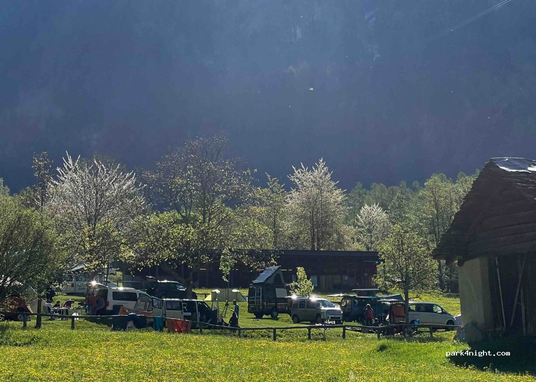 Fantastischer, top gepflegter und doch naturbelassener Campingplatz. Tagsüber sehr sonnig, je nach Stellplatz. Viele Frischwasserbrunnen und Feuerstellen über den Platz verteilt. Super saubere Sanitäranlagen. Funktionierendes WiFi. Trotz Hochsaison und Schweizer Nationalfeiertagwoche nicht zu voll gepackt. Es empfiehlt sich eine online Reservierung, auch wenn man am selben Tag kommt!
