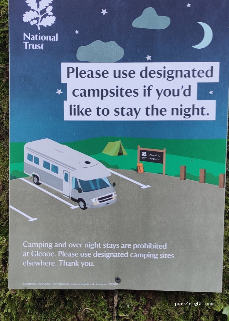 Hors de la B99, c'est le parking de la cascade Glenoe. Très calme avec poubelle à proximité et une aire de pique-nique pratique.