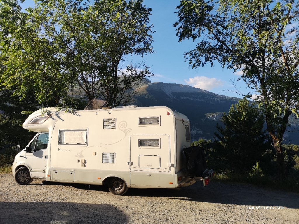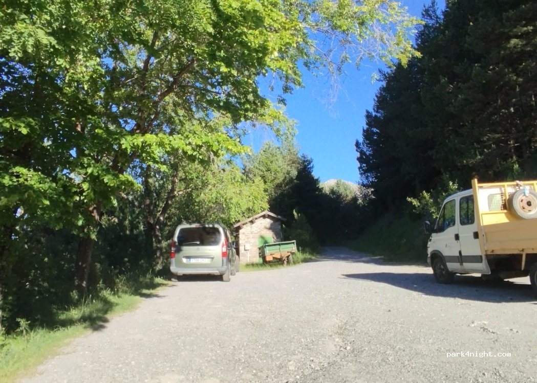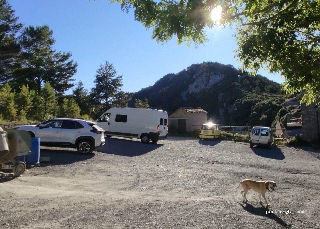 Pasamos la noche con AC en la explanada nada más entrar al pueblo (preguntamos si había problema) porque el aparcamiento era bastante inclinado.Baños y oficina de turismo enfrente. La chica de la Fonda nos recomendó otra zona a 500 metros por un camino que sale antes del aparcamiento,vistas espectaculares!!! Repetiremos. Atención a la carretera desde que dejamos la nacional.