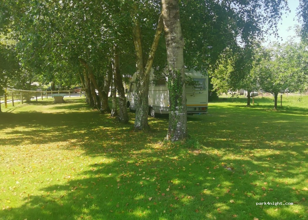 Aire naturelle idéalement située très calme avec grand espace et sanitaires propres. Les propriétaires sont très accueillants - service de livraison de viennoiseries et pain. Leur cidre est très bon. Et niveau prix imbattable. Pour 4 nuits à 3 pour un van avec électricité à peine 62€! On reviendra c est sur !!
