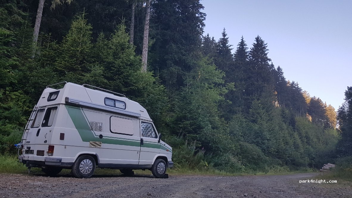 Coin paisible en bordure d'une route forestière idéal pour une nuit avec petit déjeuner. Quelques promeneurs le matin fort sympathiques et un petit cours d'eau viennent définir le cadre. Accessible en fourgon et je pense beaucoup moins confortable en camping-car.