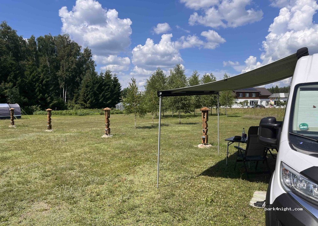 A beautiful place, home to the lovely Ceslovas and his wife Ruta. We visited here twice and were treated so wonderfully by the hosts. Stunning views with a swim in the lake a must! They have opened a new sauna too! Electric and fresh water available, plus shower and toilet. Cover communal seating area and BBQ for use as well. Grass pitches, not all of them level (may need ramps). We love it here!