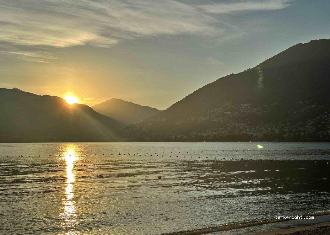 Camping CLM, Lago Maggiore. Very large campsite with hundreds of places, price varies depending on the location. In high season, we paid $ 59 .- / night for two people near the lake (high price range). Small private beach at the campsite, very nice. Very clean toilets, electricity available, kiosk selling alcohol until 23:00. Bus stop for direction Locarno and Ascona next door, free ticket at the campsite reception (very convenient). Camping restaurant also available. Beware, camping closed between 23h and 7h for cars! No pets, but children allowed ...