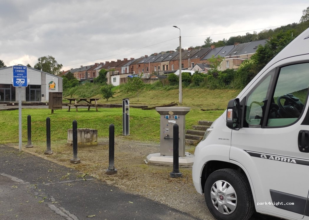 Petite Aire au calme. De superbes randonnées à faire tout autour dans le Parc naturel de Viroinval. N'hésitez pas de visiter le musée du Train tout près et faire un petit tour dans les anciens Wagons. Malheureusement lors de notre venue la borne était hors Service, sinon les jetons sont disponibles au Musée mais aussi dans les Offices de tourisme de la région. Egalement un superbe boulodrome à côté de l'Aire.