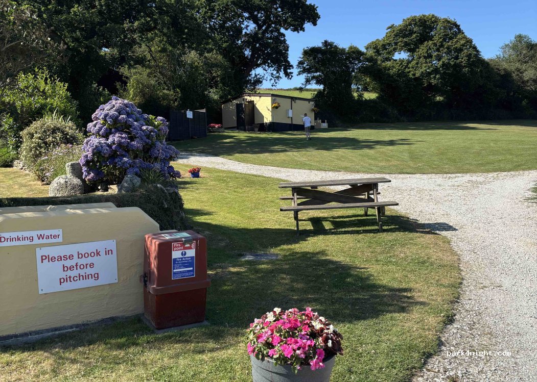 Great place very quiet even though they had a wedding going on there. Was able to stay in my car it cost £10 for one night. Toilet block and showers very basic but super hot water. There is a footpath that leads to the beach from the site toward Maenporth beach, it's about 1/4 mile. Easier to come back via road. Beautiful little cove. First time I have ever seen swans on the sea.