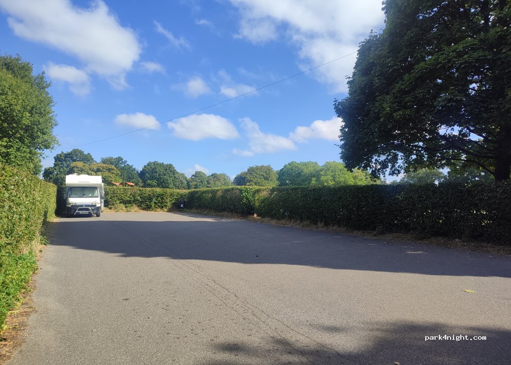 Great park up next to the village green in Headley. Very busy road during the day but it was quiet overnight and we had a good night's sleep. We just tucked ourselves in at the back and had no problems. Ground is slightly sloping but not too bad. Good for an overnight on the way somewhere!