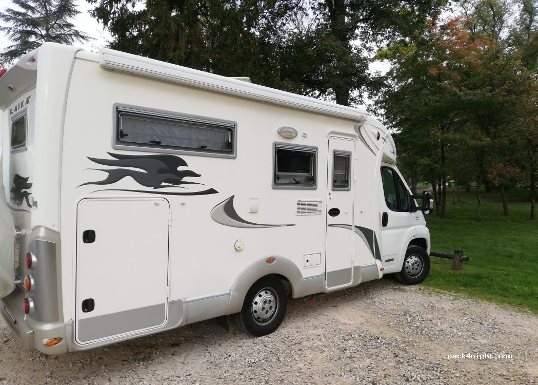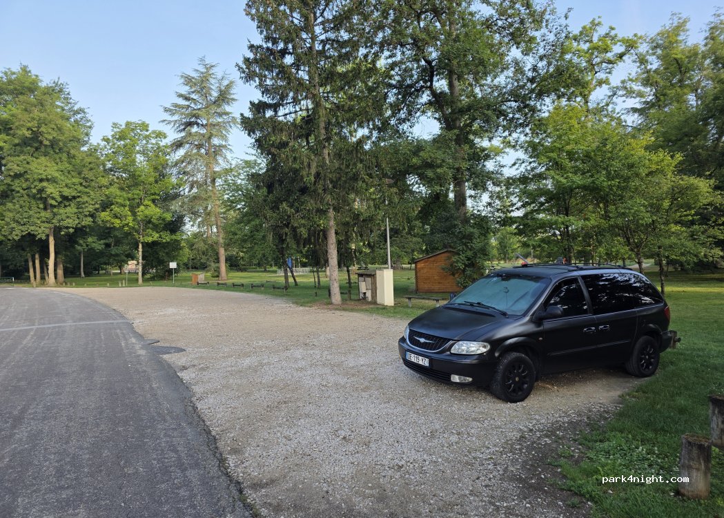Parking facile d'accès, un peu bruyant la nuit car en bordure d'une petite route mais tellement agréable en journée, aire de jeux et petit parc animalier très sympa, apaisant, cadre verdoyant entretenu. Wc et eau à proximité