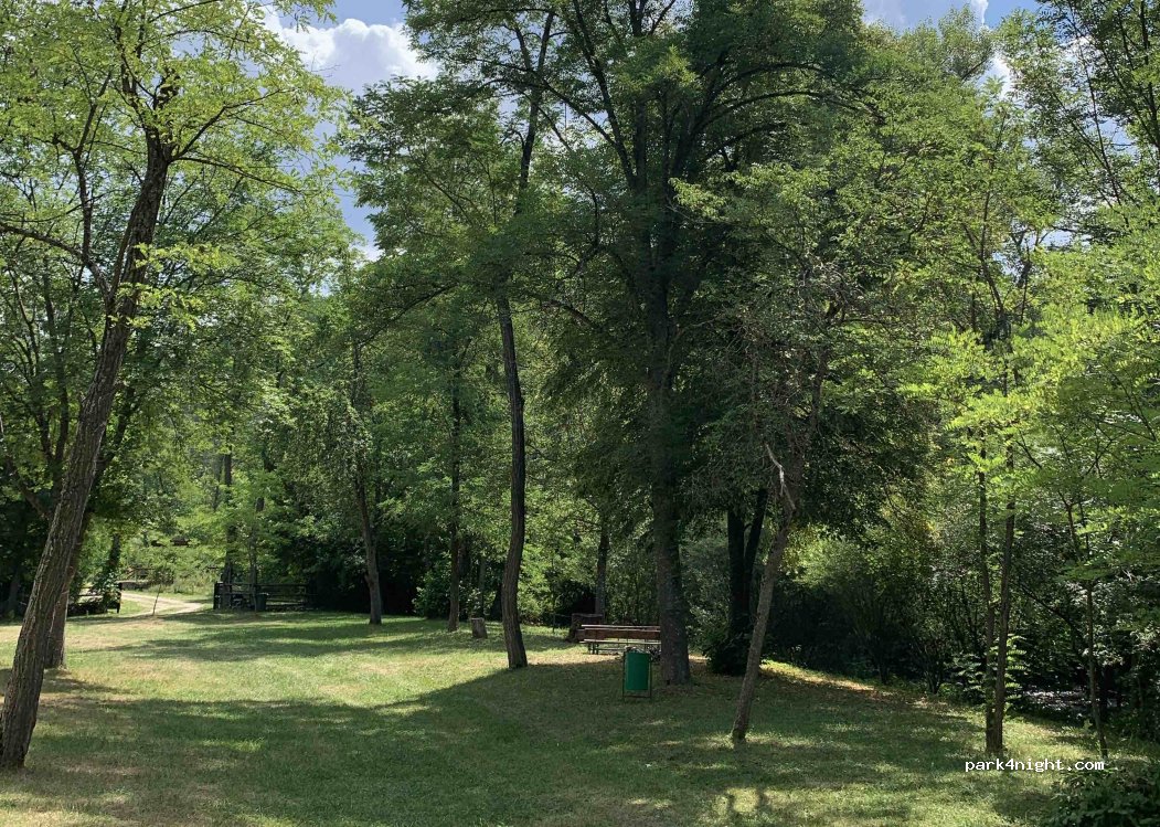 Peaceful rural location, multiple electric and water points across the site. Access to the river. Excellent sanitary facilities, best we have had in Bosnia. Very close to the border. We were the only van there on 04/07.