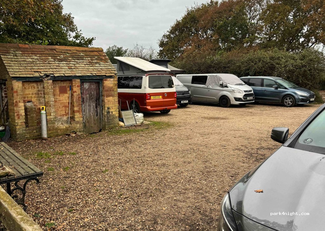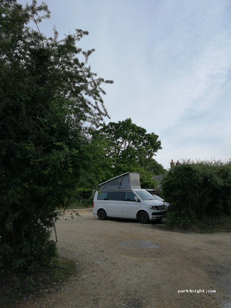 An excellent parking spot in the car park behind the pub. Quiet and discreet yet with easy access to the pub and pub toilets via the back door. Really goos atmosphere in the pub, with great food. We were even treated to live music!