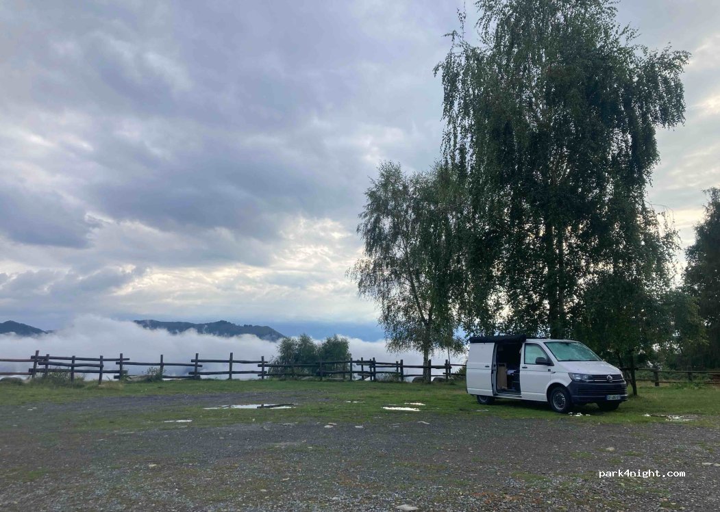 Incredible spot to spend a few nights and do some cycling/hiking. Great views and quiet (except for the cows with their bells!) with a large grassy picnic area. Well worth the climb up. we stayed 3 nights, busier on weekends when the restaurant is open but still quiet in May. No water around (we paid 10 euros to fill up 40l at the restaurant).