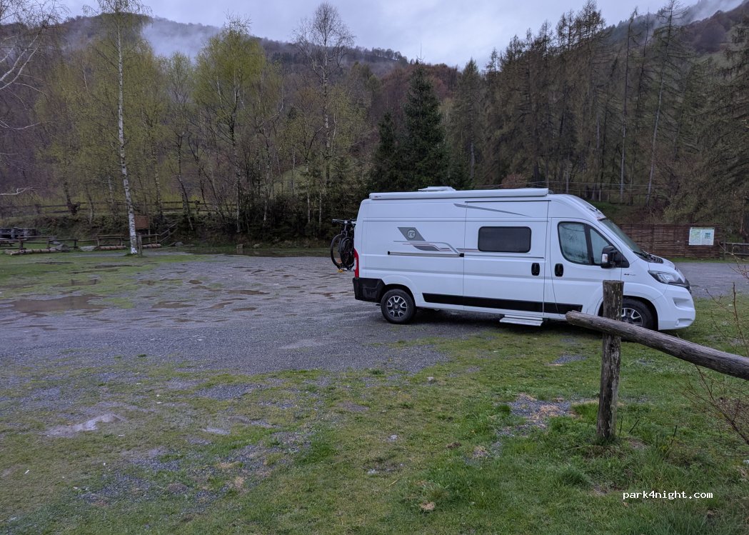 Grand parking gratuit, munit de poubelles et de toilettes. Une vue sur la vallée imprenable. Le son des cloches de vaches apaise ou empêche de dormir, à vous de choisir !