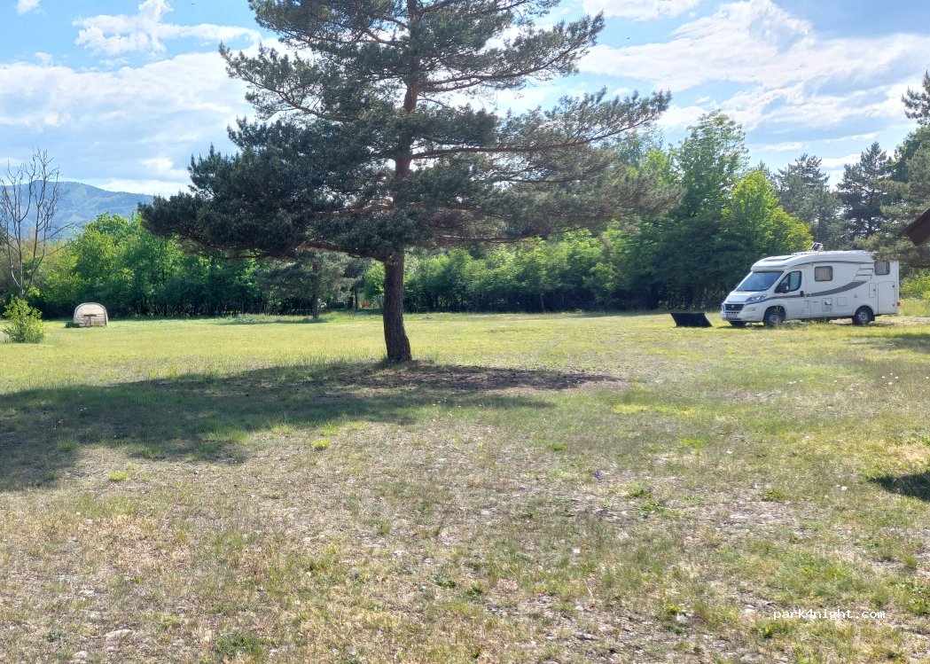duży plac że skoszoną trawą , obok płynie piękny potok. toalety czyste, woda ciepla. zatrzymaliśmy się na noc wracając z Budapesztu. śmiało mógłbym tu zostać na weekend.