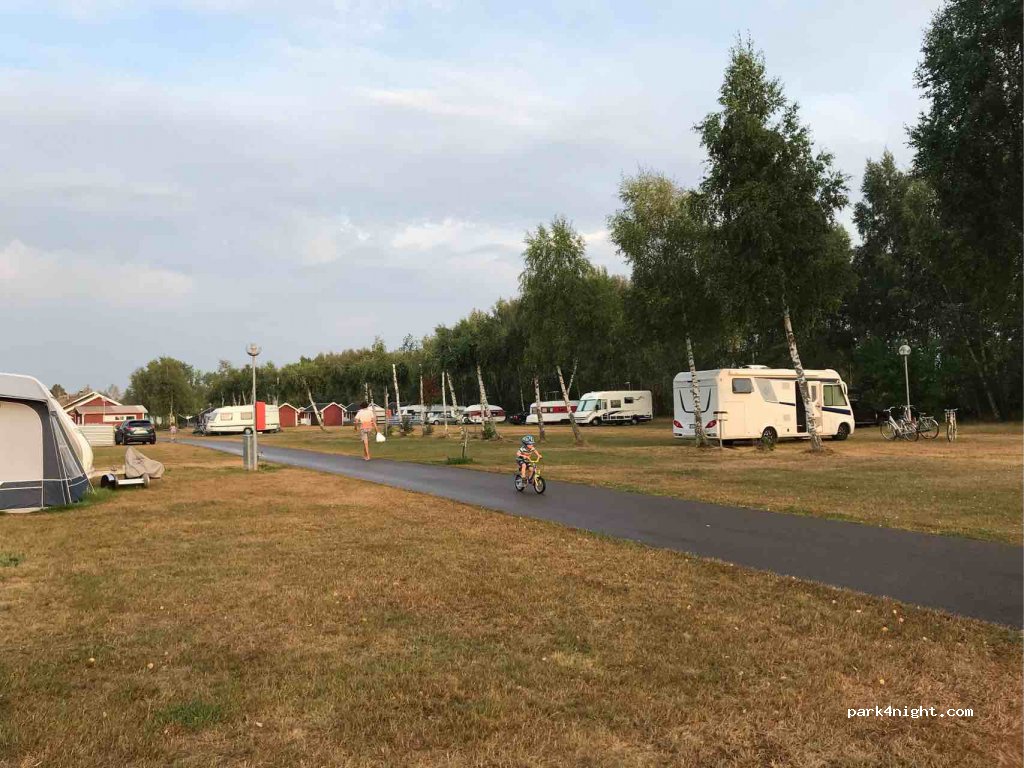 Vriendelijke ontvangst. royale plekken. Wandelafstand naar het strand. Sanitair is wat verouderd, maar wel schoon. Wij betaalden 400 SEK (36 Euro) voor één nacht wat ik best prijzig vind voor een camperbus, twee personen en een hond, zonder electra. Douchen en water tanken is inbegrepen.