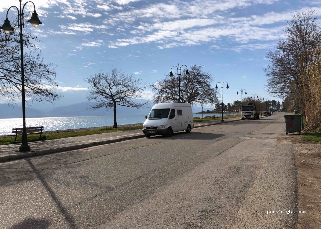 Please no camping behaviour. take care. it is close to Nafpaktos city. it is allowed to spend a night or two and visit downtown. Don't take out your personal equipments and all the things you have in your camper. its not a camping area.