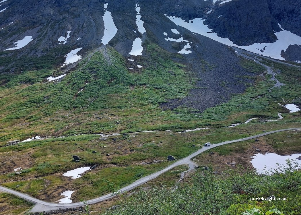 Wer Natur pur möchte, ist hier genau richtig. Schafe, Wasser, kleine Schneefelder und eine kurze Wanderung zum Littlefjellet kann man hier unternehmen. Mobilfunk hat man hier nicht. Mautgebühren wurden digital aufgenommen.