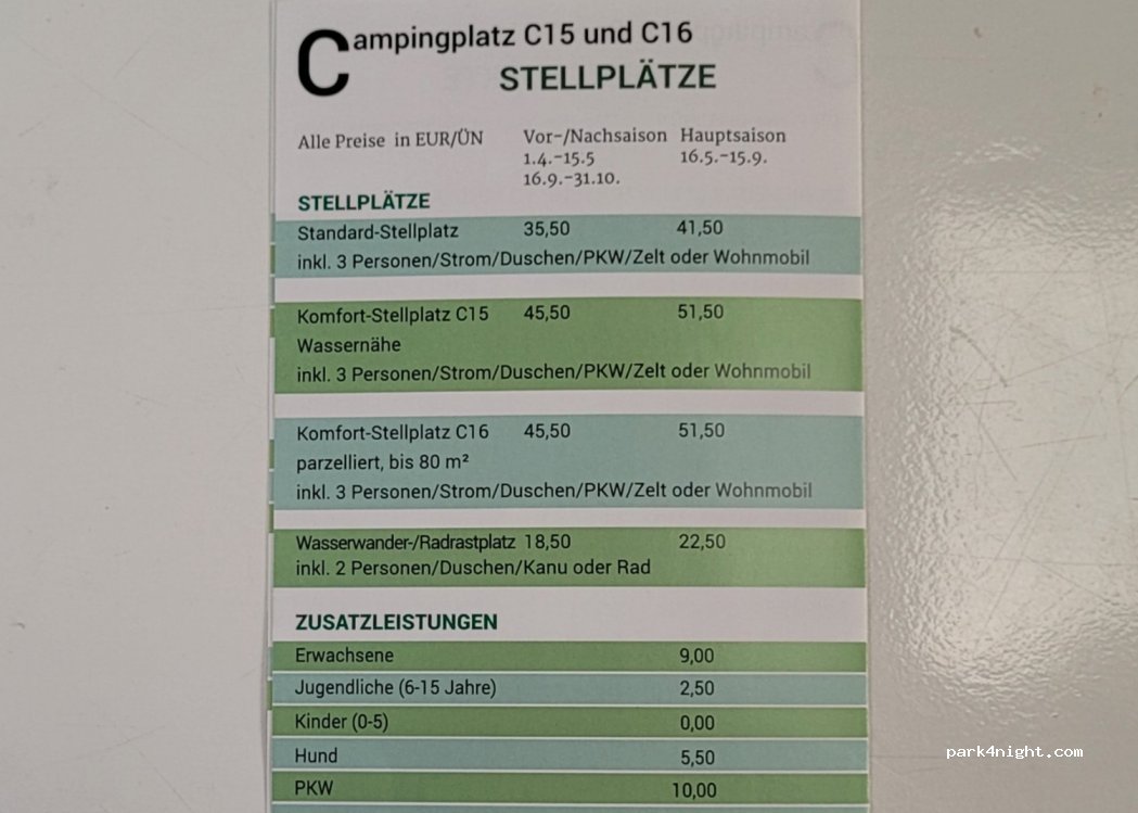 Spend one night at the camping and I had a great experience cycling into the Müritz park. On the morning could see some rabbits walking on the camping, and the lake is full of fishes. They have a small kiosk to buy food/drinks and the shower/toilets are fair. I was with my bike and paid 24,50.