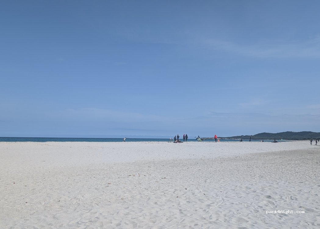 Parkplatz direkt am Strand. 10/€ pro Tag (8-20 Uhr), nachts kein Ticket notwendig. Der Strand ist sehr weitläufig, die Strandbar in der Nähe auch zu empfehlen. Haben hier 2 entspannte Nächte verbracht.
