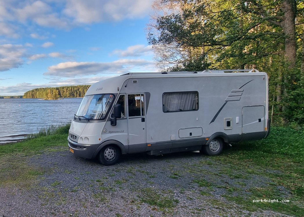 Small spot where you can stay over night. There was a small dock and couple boats that you are not allowed to use. If you drive the same road a bit further, you'll find marked parking slots where you can stay too.