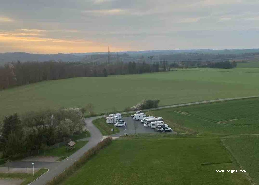 Nice and quiet, toilet for 50ct, view tower for 1€, but for free at the time we visited. Most people made themselves a bit too comfortable and occupied quite some space with tables and chairs, etc. We just squeezed in late, which seemed to annoy at least one guy. Few other campers already went to the parking lot instead. Other than that we had a very good sleep here.