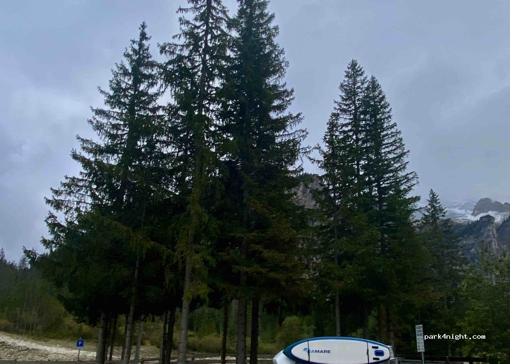 Superbe endroit, à 12 minutes du lac de Braies. Nous y avons passé la nuit (gratuit entre 16h et 8h). Il y a une rivière à côté. Très calme le soir. Possibilité de faire une pétanque sur le parking en fin de journée car très peu fréquenté :)